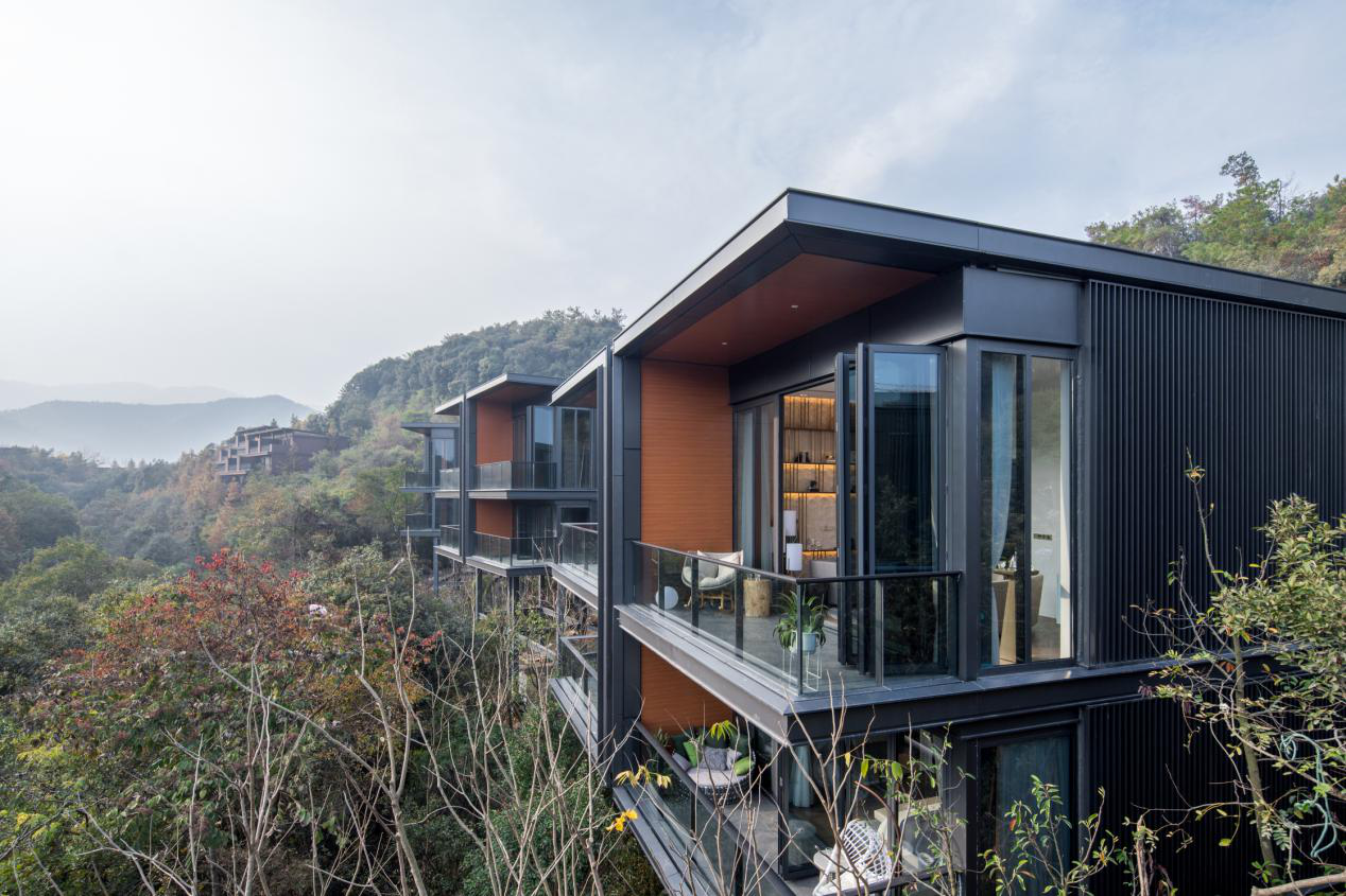 延请芬兰Viiri设计事务所,主创设计首批墅式观山酒店,采用现代北欧建筑的极简手法,顺山体通过层层退台将体量削减,使建筑隐于山林之间。同时所有户型均采用大面积玻璃落地窗设计,以求最大限度让居者融入自然,营造出与自然同呼吸的美好。