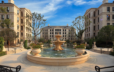 法式多层公寓系列产品是蓝城多层物业的高端形式,具有低密度、低容积率、高绿化率等优点,确保建筑与环境的高度融合,塑造庄重、典雅的建筑形态。